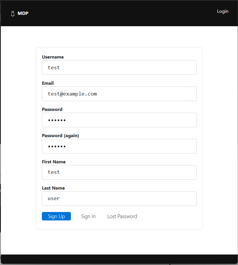 Screenshot: New user sign up form