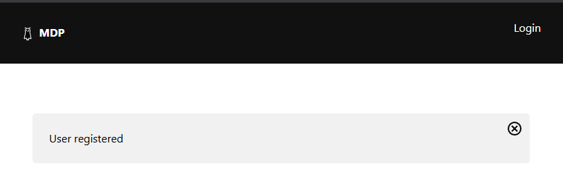 You should see a “User registered” message if your signup was successful.