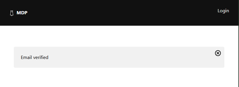 After navigating to the verification link, an “Email verified” message will be displayed. Now you’re ready to log in!