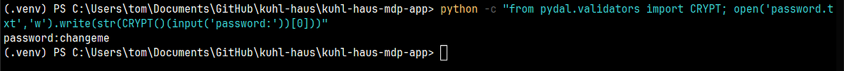 You’ll be prompted to enter your desired password. The command uses pydal’s CRYPT validator to hash it securely.