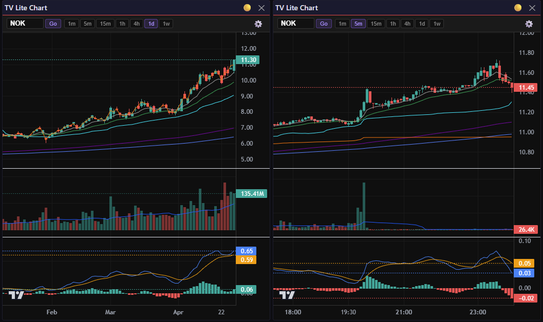 Screenshot: TV Lite charts 1d and 5m with my default day trading layout
